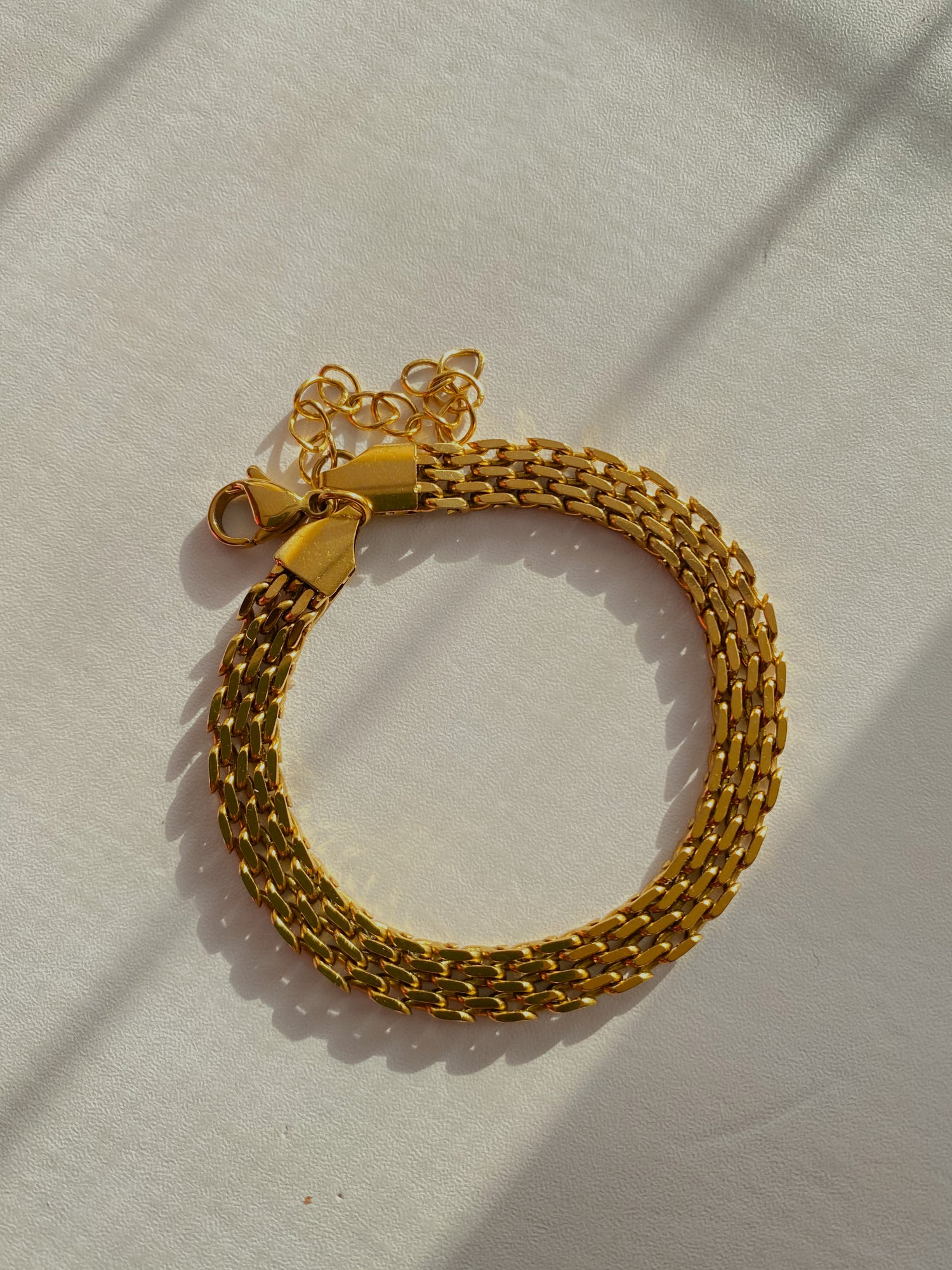 She'll wear this gold bracelet all day and night because it transitions well from day to night. The mesh pattern is fluid and glam, making it a must-have for any jewelry collection.